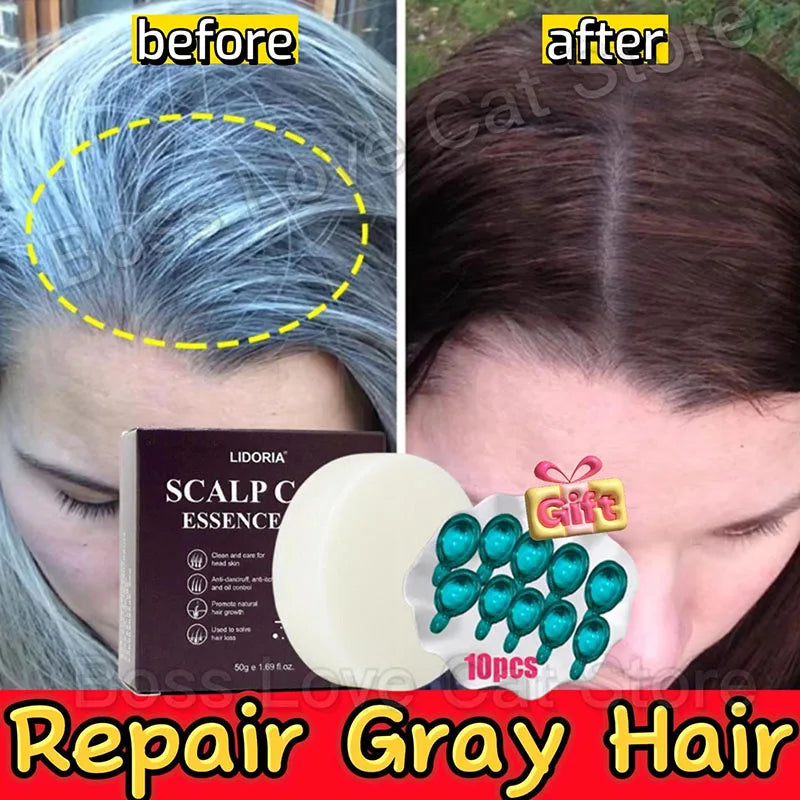White Hair Darkening Shampoo Soap Restore Gray Beard and Hair Natural Color Soap Gray White To Black Dye Hair Fixing Shampoo Bar